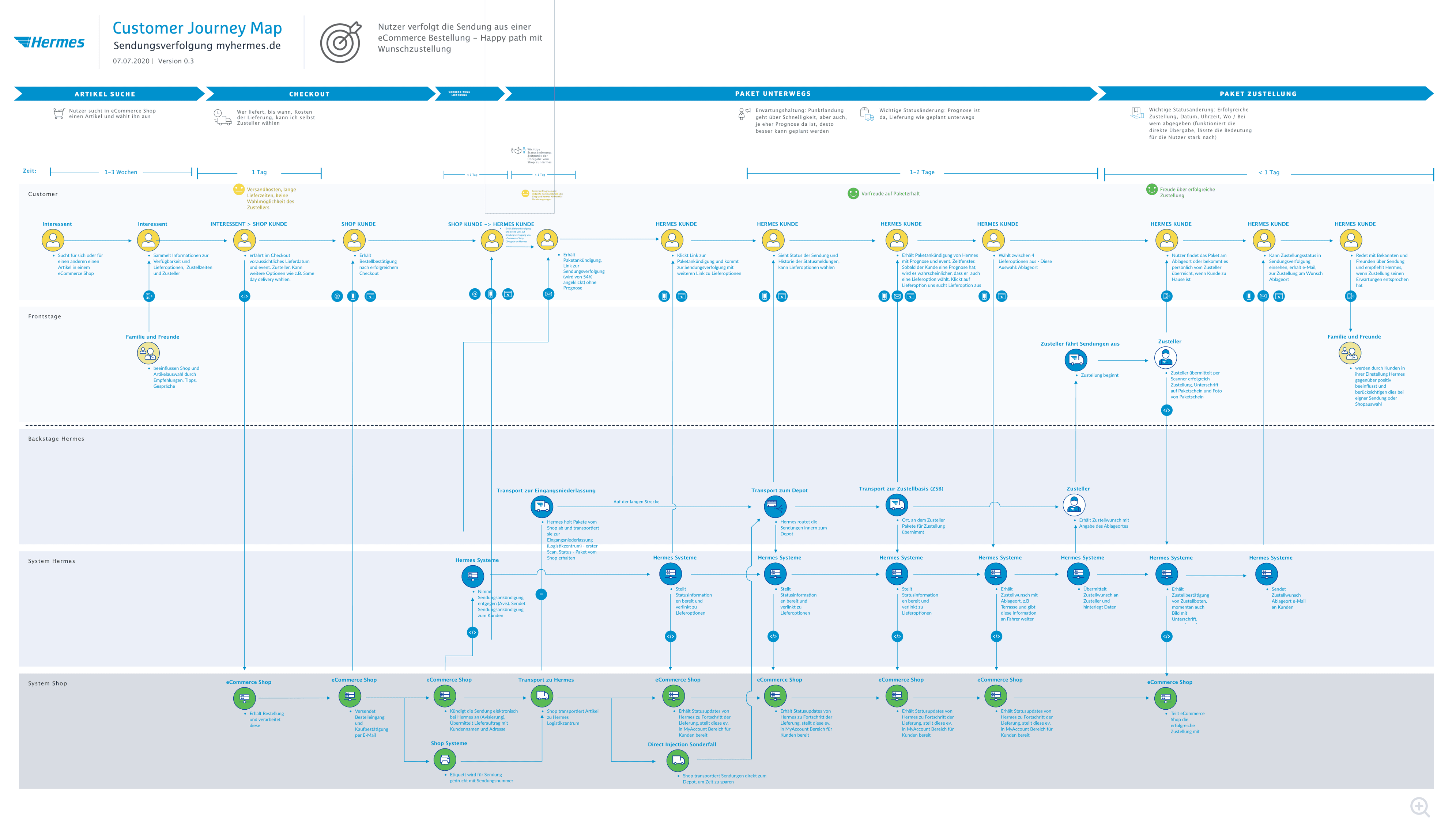 I created a user journey to foster stakeholder and team alignment, mapped insights from the first user testing and used newly discovered states from the developers state discovery and extended the journey into a delivery blueprint draft.