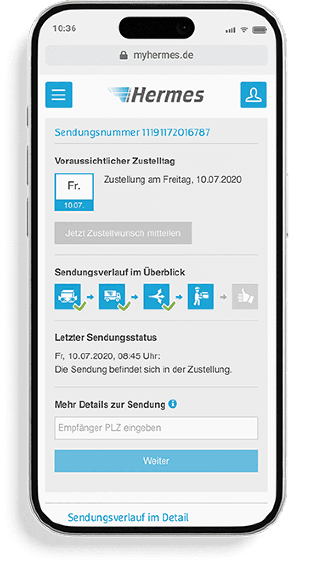 The new tracking experience highlights the emotionally significant moment of a parcel’s arrival for many recipients. It tells a visual story of the journey—from handover, through multiple transport steps, to delivery.